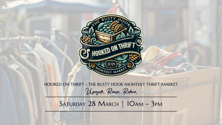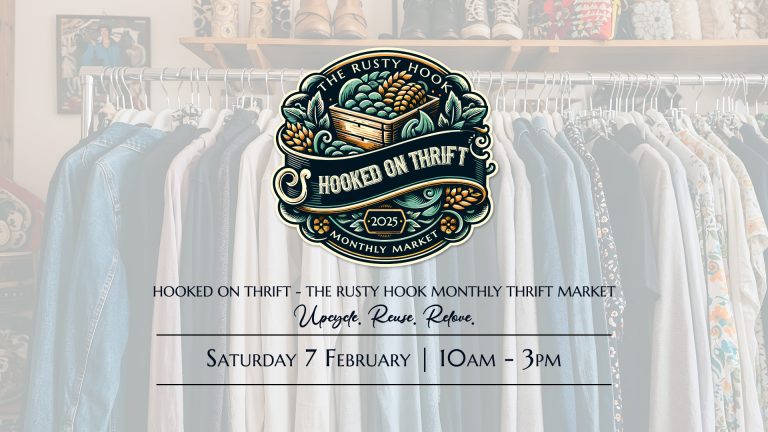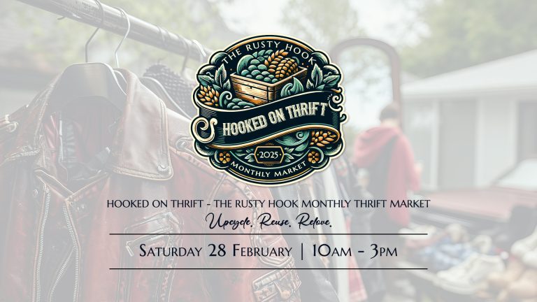 FREE ENTRY | PET-FRIENDLY Discover treasures at the Hooked on Thrift Market: Rusty Hook’s monthly haven for vintage, upcycled, and pre-loved finds. ✨ Where sustainable shopping meets unique style, one stall at a time. ♻️🛍️ ✨🛍️ Hooked on Thrift: The…